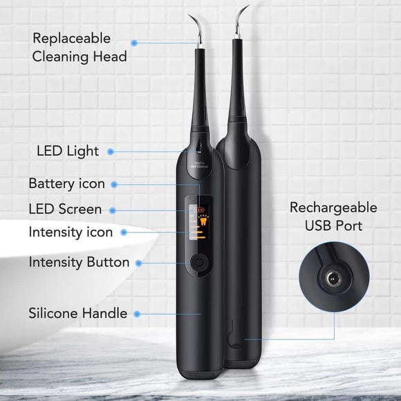 This dental cleaning tool comes with an LED HD screen, auxiliary LED light and a silicone handle. It has a smart memory function, which automatically selects the last shutdown mode when it is opened. It also has 3 heads to choose from depending on your dental needs.