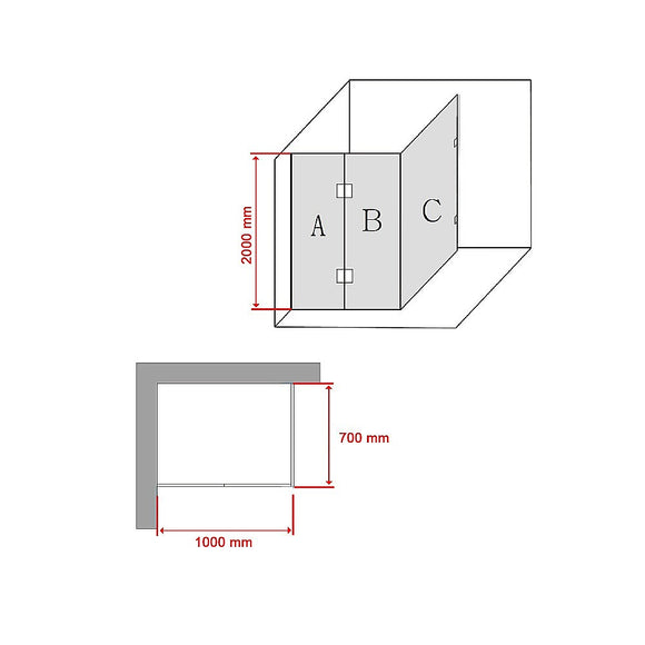 Della Francesca Frameless Shower Screens - Great Style for an affordable Price 1000 x 700 x 2000 Square Shape Finish