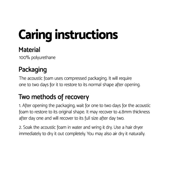 Note: The acoustic foam comes in compressed packaging and will need one to two days to restore to its normal shape and size.